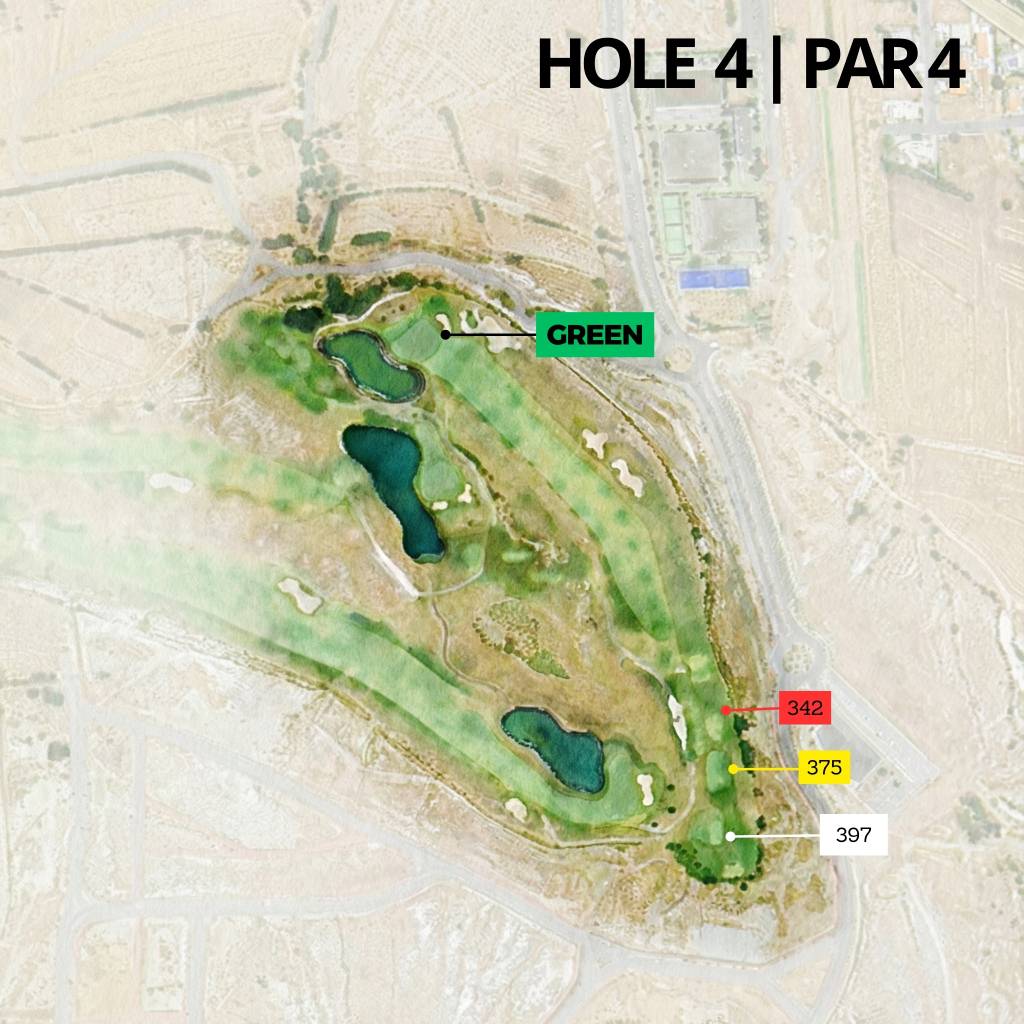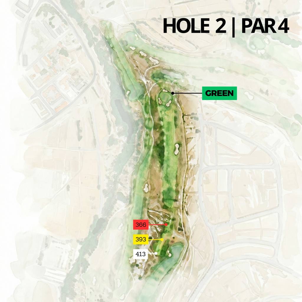 Recomenda-se um drive, apontado à esquerda do bunker de fairway. O segundo shot é feito com um ferro médio para o green, tendo atenção ao bunker situado no lado esquerdo.
