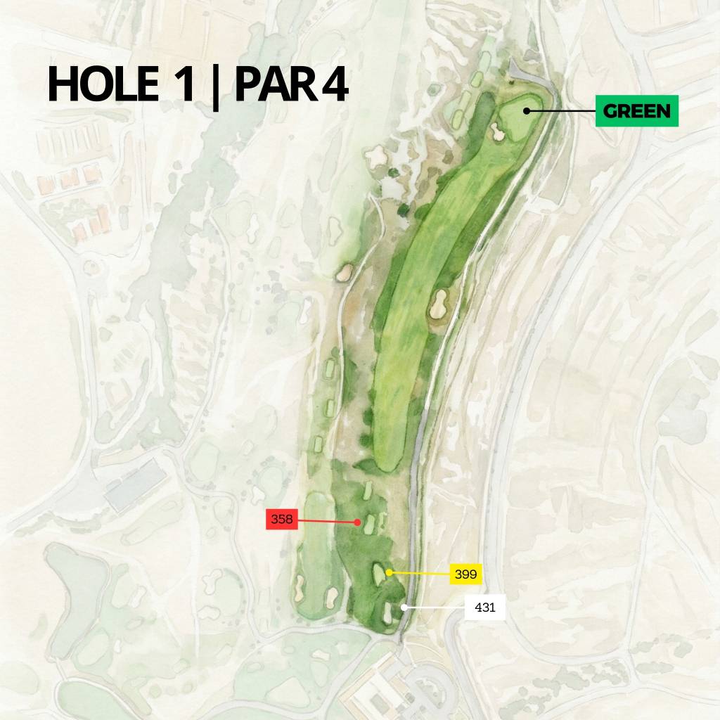 No tee, jogar o drive à esquerda do bunker. O segundo shot é exigente, para um green muito bem defendido, com dois bunkers à entrada e um bunker no fundo do green.